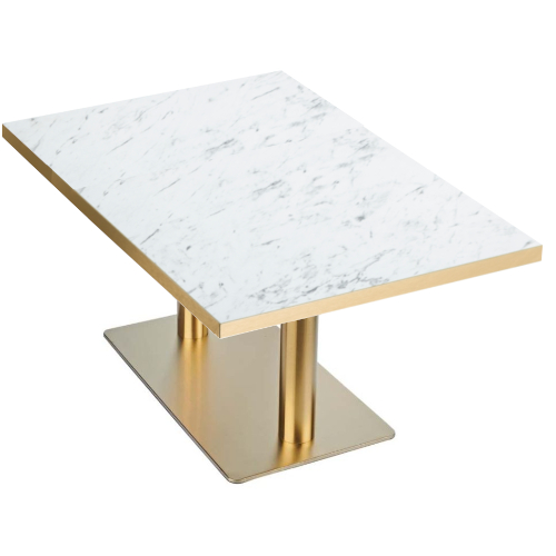 Our Hermes Brass Range pairs beautifully with a laminate effect marble table top, or any other laminate finish. We offer the Hermes in virtually any shape and size, in a wide array of finishes.