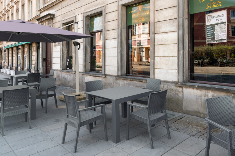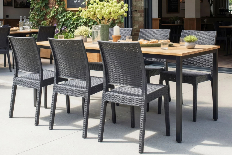 The Venue range is made with a grey powder coated aluminium frame and an EZ Care slatted backrest and seat. Our EZ Care slats are made with plastic and formed into a wood effect. These features make the Venue range ideal for all round outdoor use.